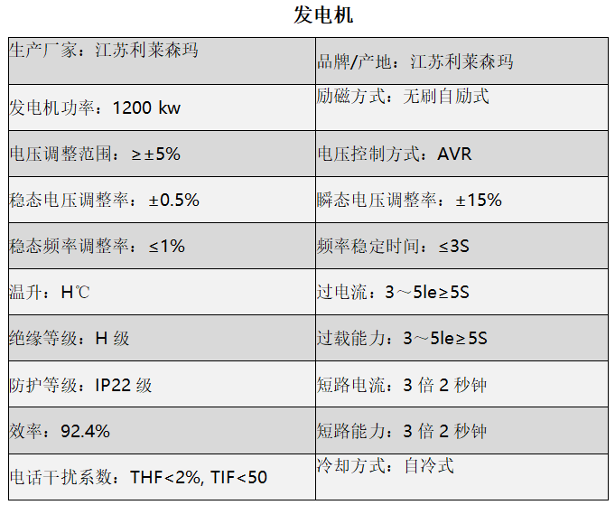 ★隨機資料:柴油機及發電機原廠技術文件、發電機組說明書、測試報告等。