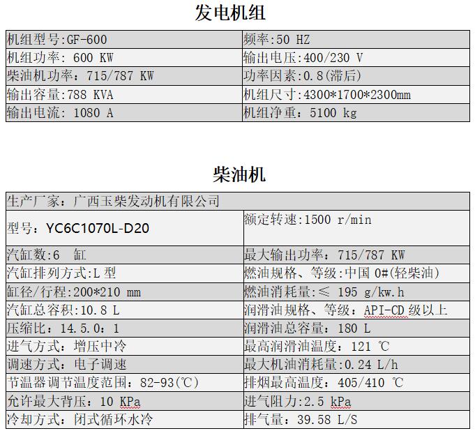 玉柴600KW