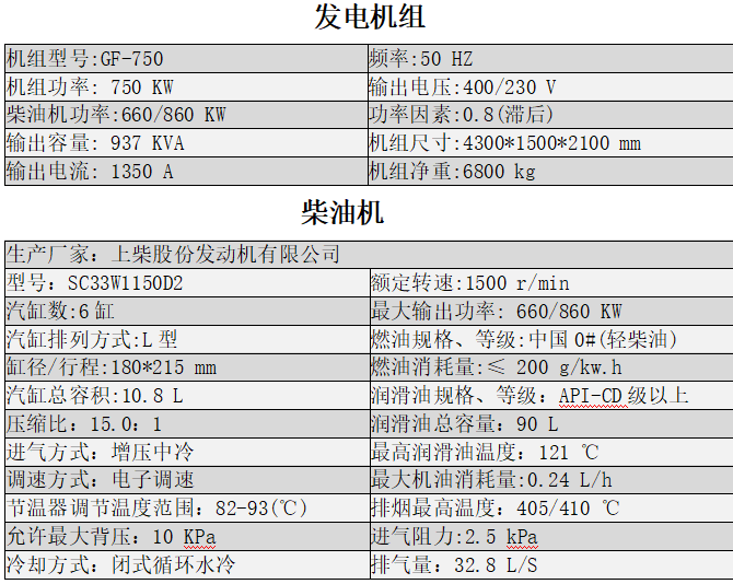 機組在下列條件下,能夠可靠的工作輸出持續功率:海拔高度:≤3000 m;環境溫度:40℃相對濕度:85%。