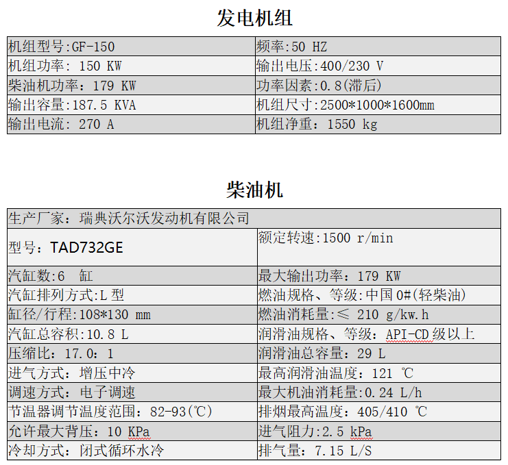 ★干式空氣過濾器,燃油過濾器,潤滑油過濾器、啟動馬達、并配有自充電發電機;