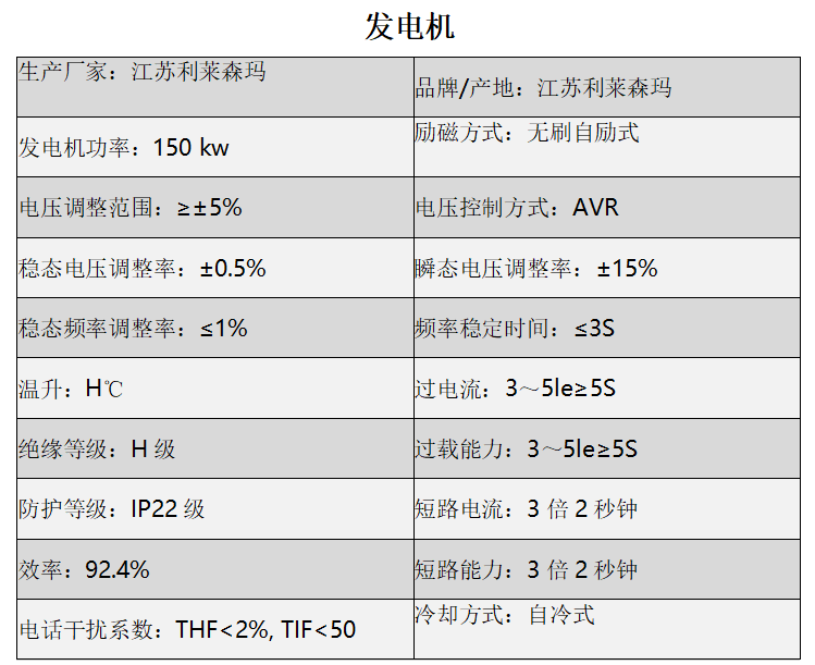 ★隨機資料:柴油機及發電機原廠技術文件、發電機組說明書、測試報告等。